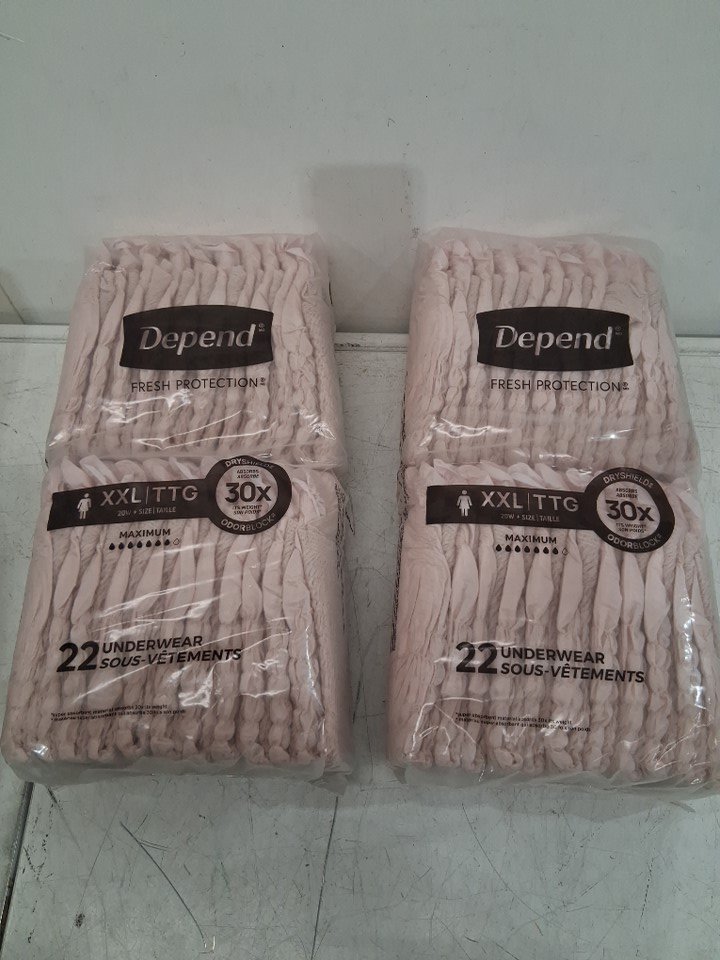 44PK WOMEN'S DEPEND FIT-FLEX INCONTINENCE UNDERWEAR WITH MAXIMUM ABSORBENCY - XXL - (MODEL: 53304)