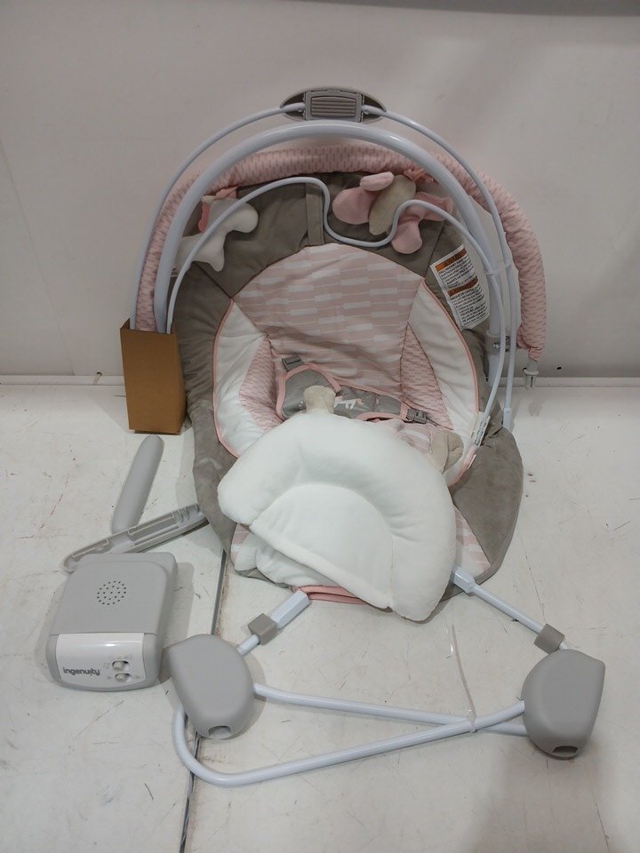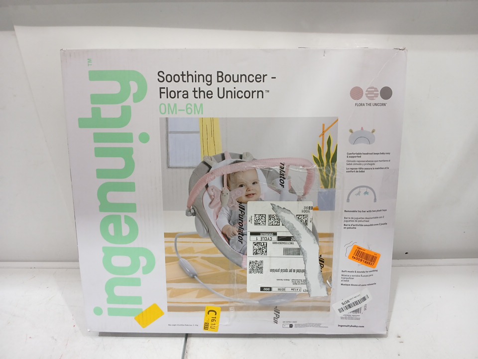 Ingenuity soothing baby bouncer infant seat with vibration toy bar and sound 0-6m - pink flora the unicorn