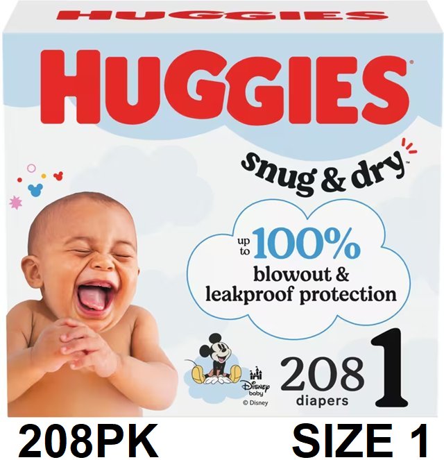 208PK HUGGIES Disney baby SNUG AND DRY leak protection - size 1 (8-14lbs)