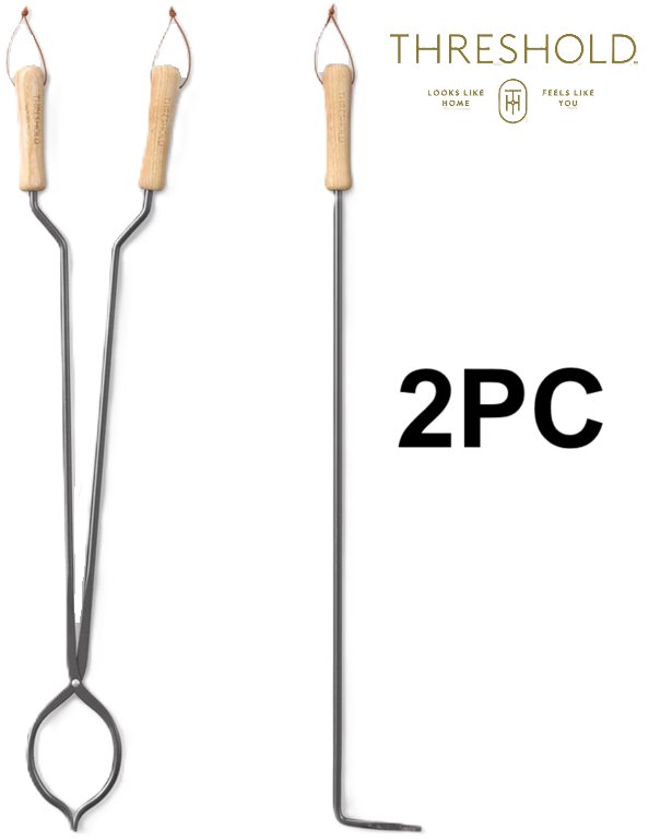 2pc Threshold Tongs and Fire Poker Tool Set - Natural/Black (Model: 009-10-9284-R00)