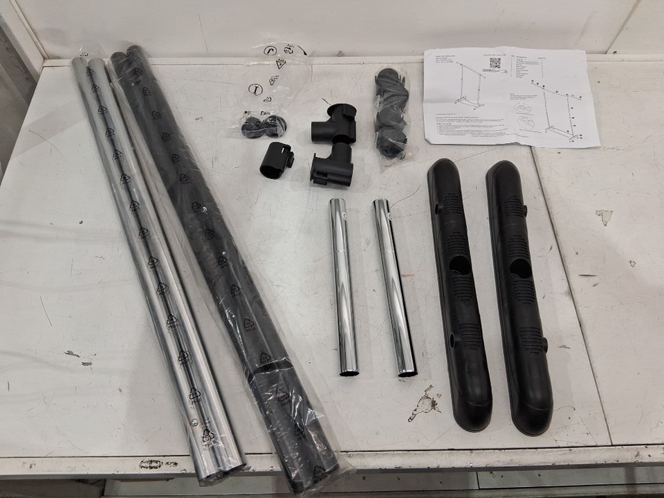 BRIGHTROOM ADJUSTABLE GARMENT RACK - 48"- 64" x 33"- 47" - BLACK/SILVER (Model: 002-05-7478-R00)