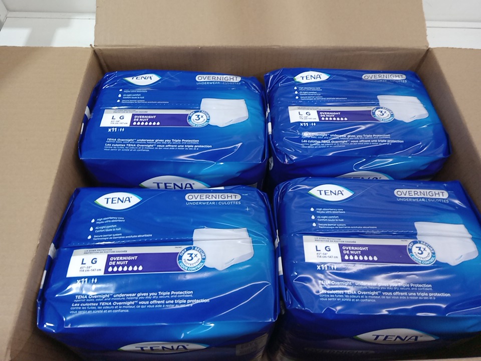 44pk unisex adults TENA overnight Underwear - 3x protection - Large (MODEL: 072312)