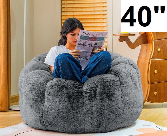 Plush soft bean bag donut chair with non-slip bottom - 40" - grey