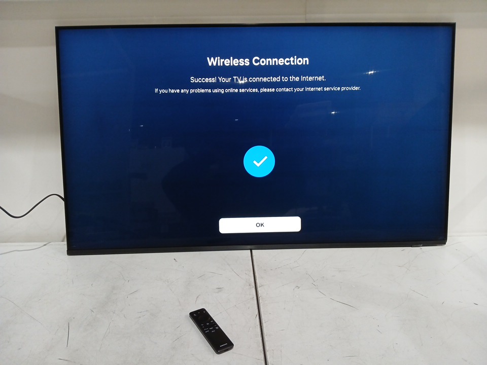 the tv has been tested for power & connectivity. there are horizontal dead pixel lines on the bottom right hand side of the tv. due to no samsung account we cannot further test for picture quality.