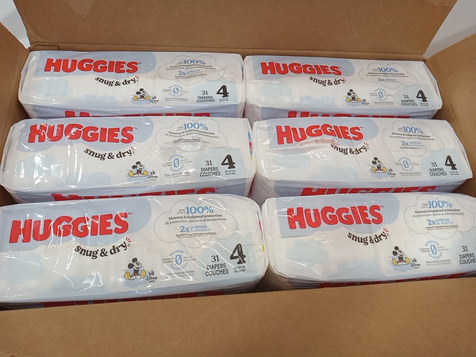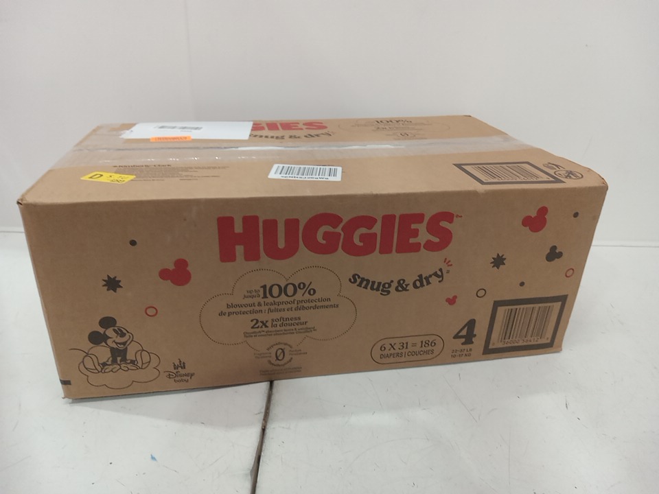 186pk huggies snug and dry diapers - size 4 - 22lb to 37lb - disney mickey mouse