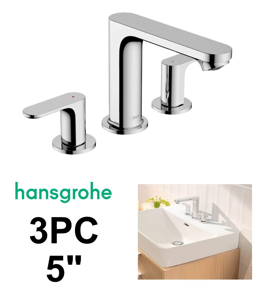 3PC HANSGROHE Rebris S Widespread Faucet SET with Pop-Up Drain - 5" - Crome