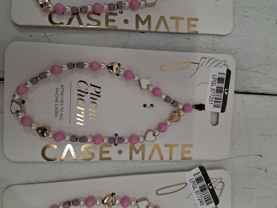 CASE-MATE PHONE CHARM WRIST STRAP - 7" - PINK/SILVER HEARTS - (MODEL: CM055552-05)