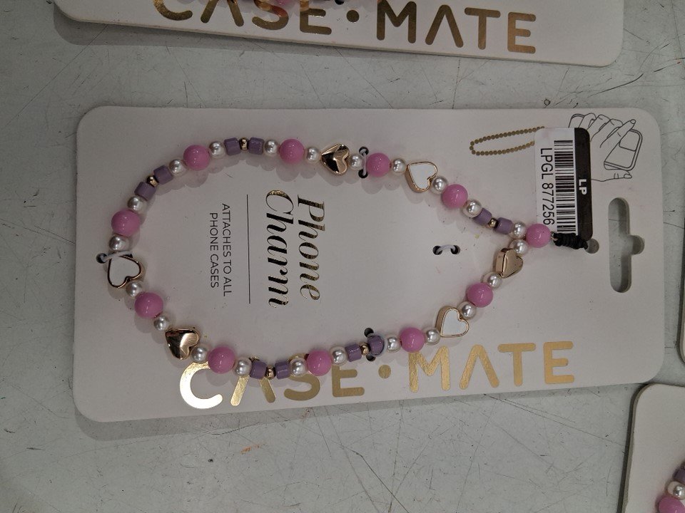 CASE-MATE PHONE CHARM WRIST STRAP - 7" - PINK/SILVER HEARTS - (MODEL: CM055552-05)
