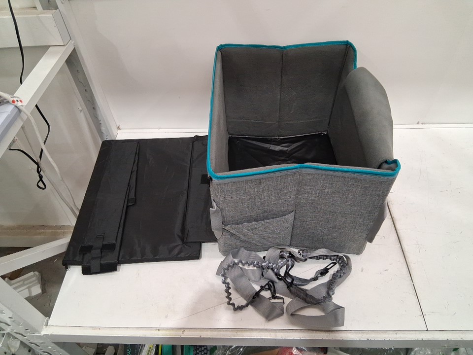PETSFIT PORTABLE DOG BOOSTER SEAT FOR CAR WITH CLIP-ON LEASH - 45LBS - BLUE/GREY - (Model: DVCC041065AG)
