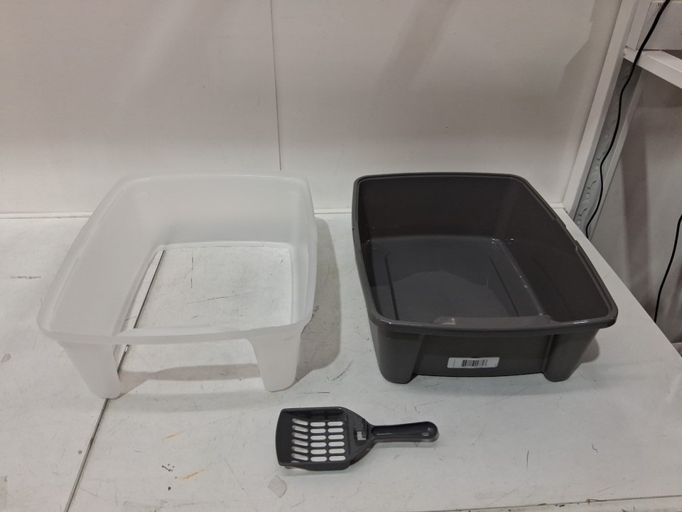 IRIS USA Large open top Cat Litter Box with scatter shield and scoop - 19" x 15" x 11.8" - grey/clear