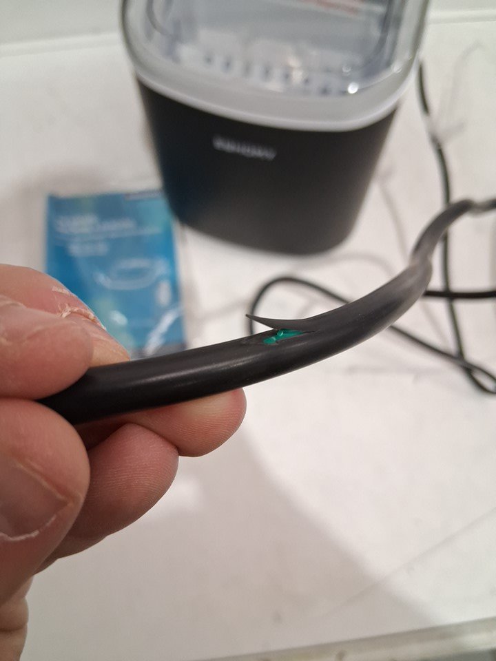 Tested for Power Cord has a cut on it, exposed wire, machine still works