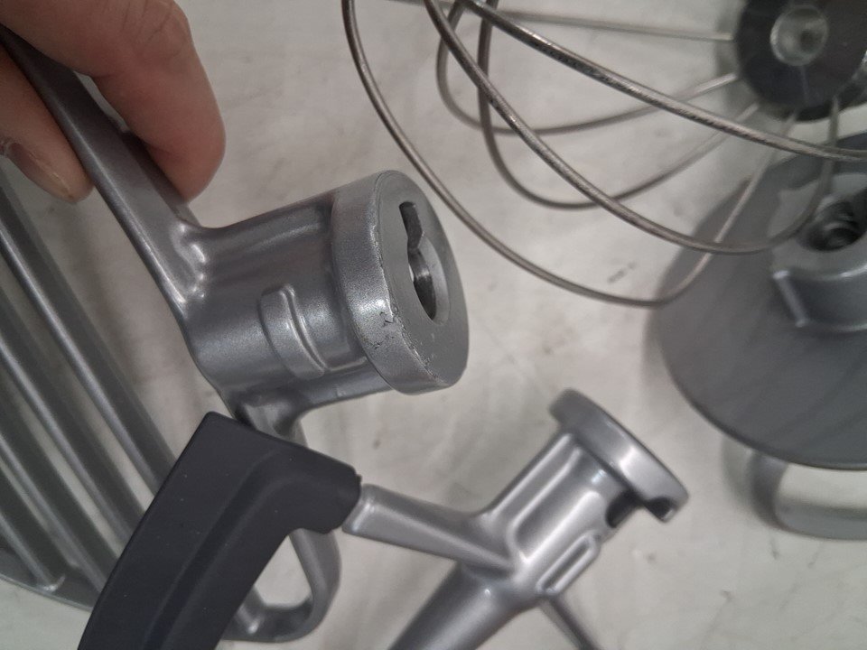 Tested for power, on both bowls there are some scratch marks and dents from use and on one of the attachments there are some scratches as well, see all photos.