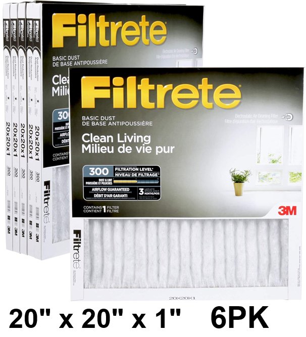 6pk filtrete basic dust clean living ventilation filter MPR 300 - 20" x 20" x 1" - grey/white (model: 9852DC-NA)