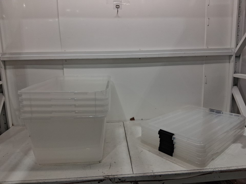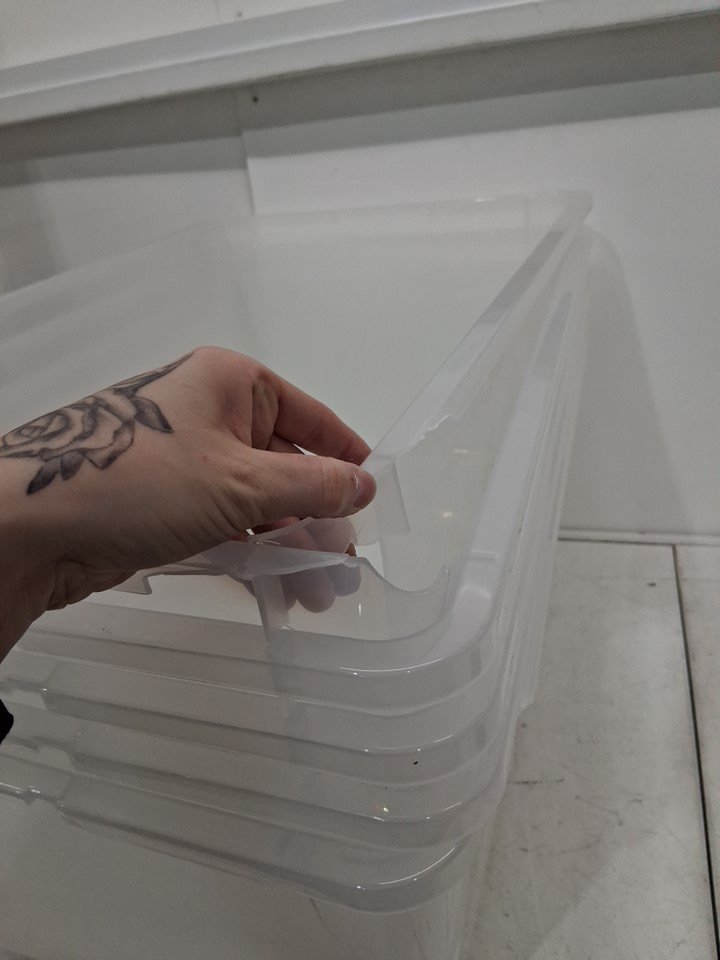 Two of the bins are broken and three of the lids are also broken, see all photos.