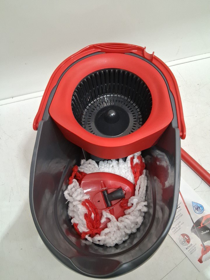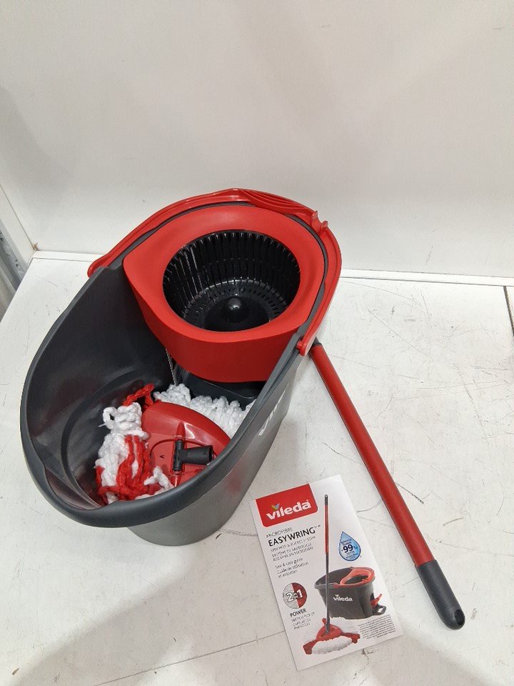 Vileda EasyWring Spin Mop Bucket Floor Cleaning System with Power Mop Head and extendable handle - red/grey (model: 172880/ 10683010609981)