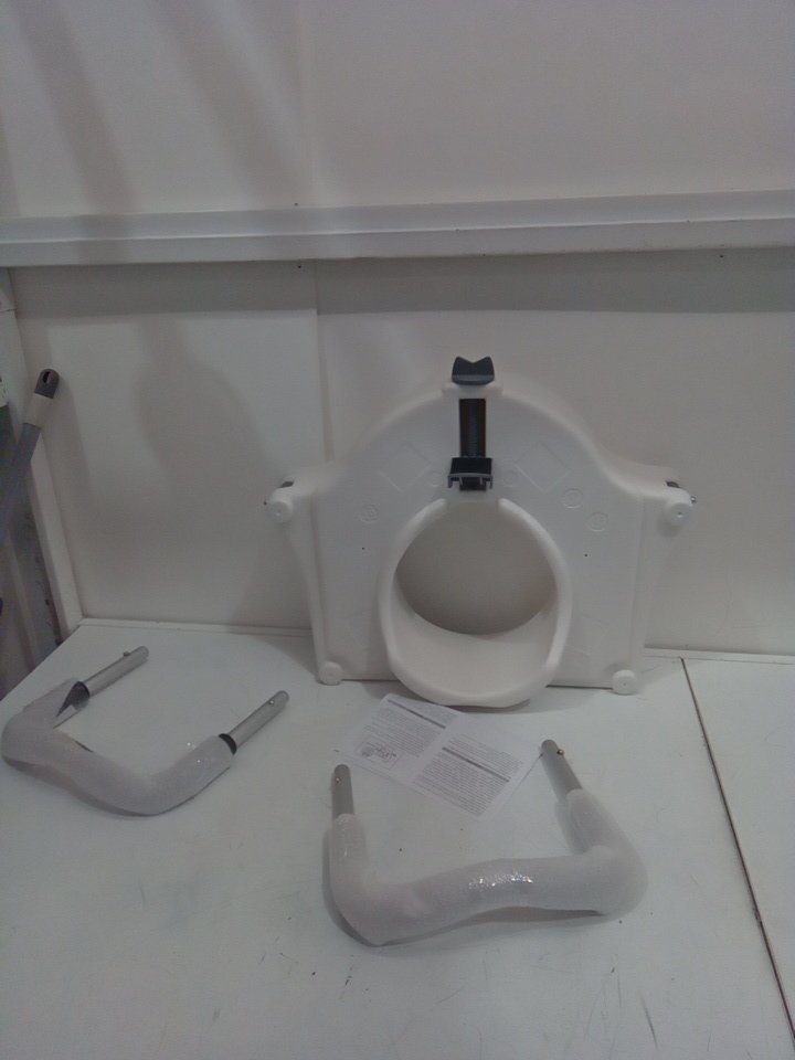 vevor raised toilet seat with arms - 4" - 300lb capacity - white/black (model: sc7060d-4a)