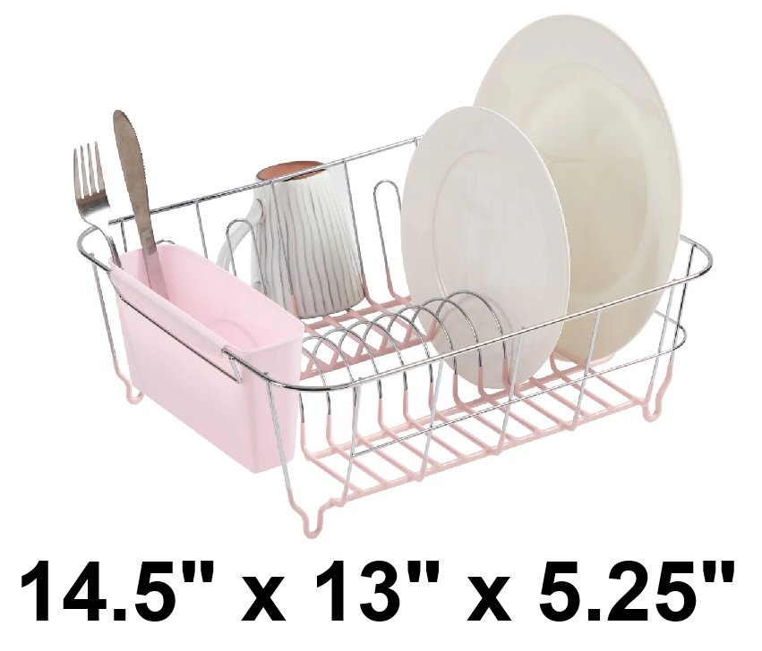 Sweet Home Collection Dish Drying Rack- 14.5" x 13" x 5.25"- Pale Pink (model: 140106)