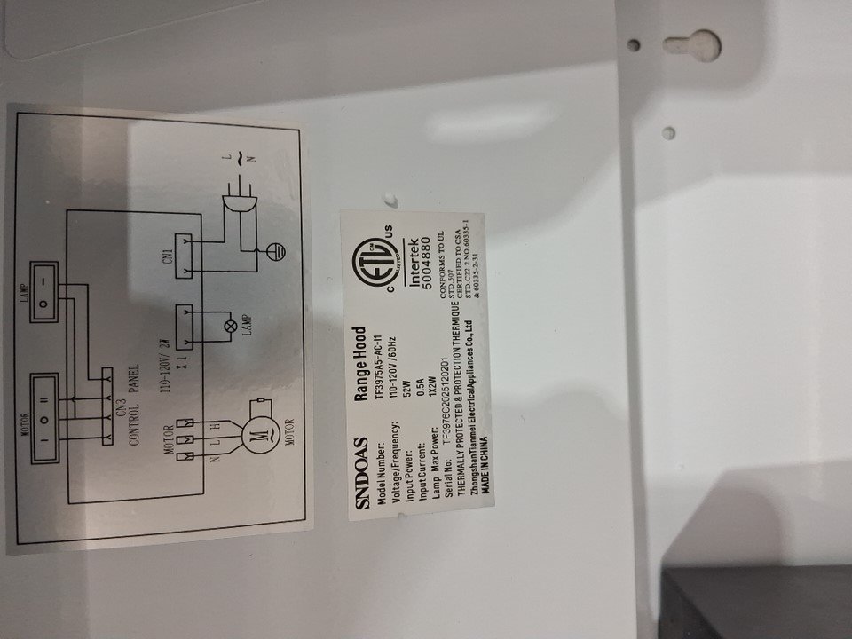 SNDOAS Range Hood Under Cabinet Kitchen range Hood - 30" - white (model: tf3975a5-ac-i1)