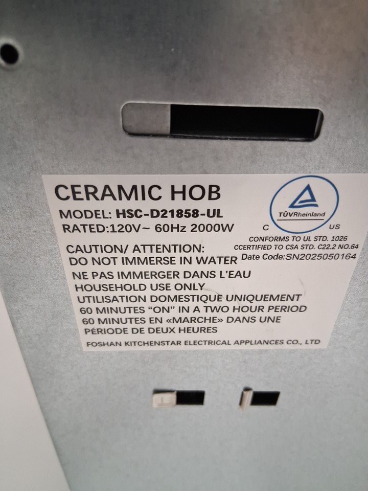 hobsir 2 burner ceramic electric hob - 120v - 60hz - 2000w - black - (model: hsc-d21858-ul)