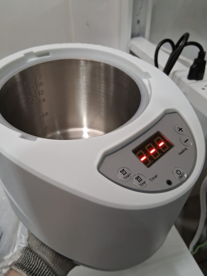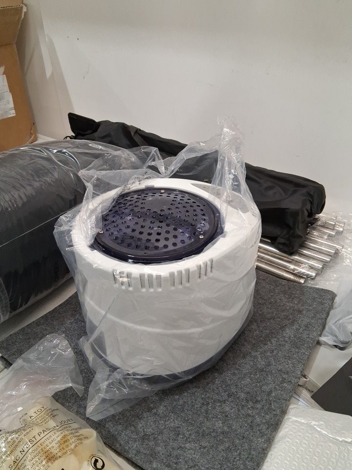 Appliance seems used based on water stains/buildup in bottom of basin. Tested for power.