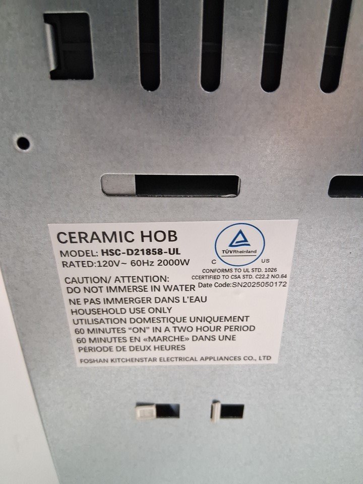 hobsir 2 burner ceramic electric hob - 120v - 60hz - 2000w - black - (model: hsc-d21858-ul)