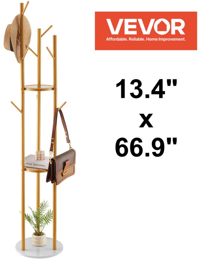 Freestanding Tree Coat Rack With Shelves - 13.4" x 66.9" - Gold (Model: GH-620)