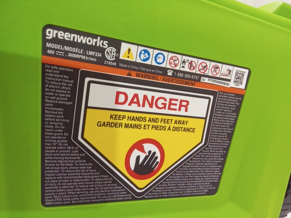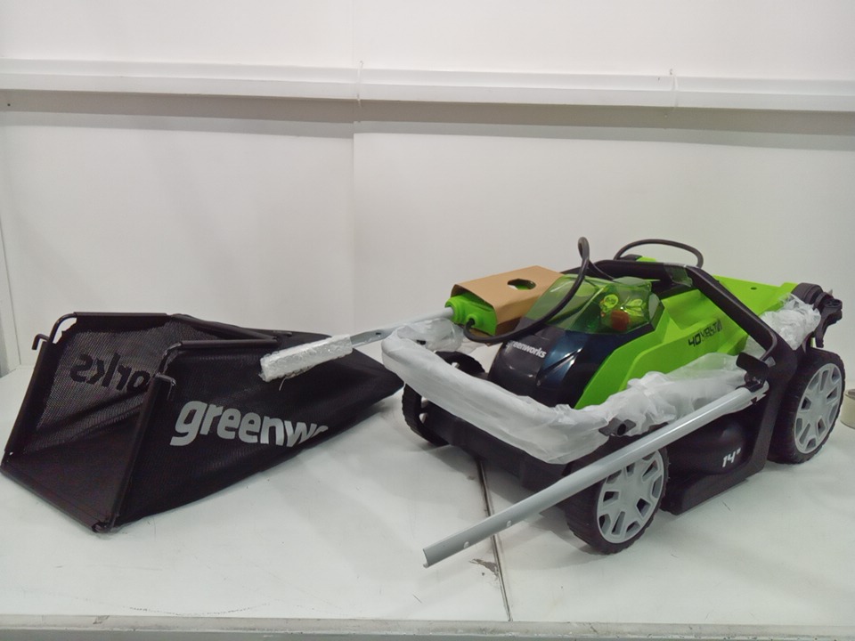 Greenworks Battery Powered Cordless Lawn Mower With Charger - 40V - 14" - Black/Green (Model: LMF334)