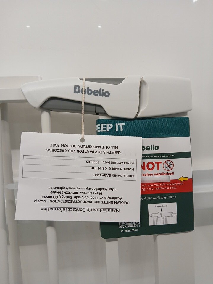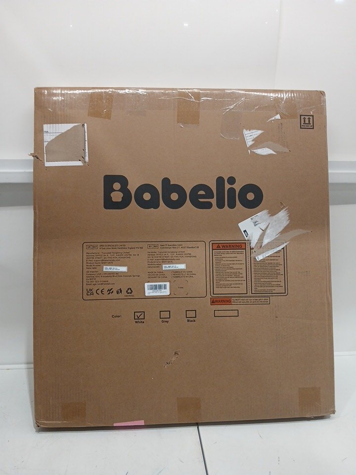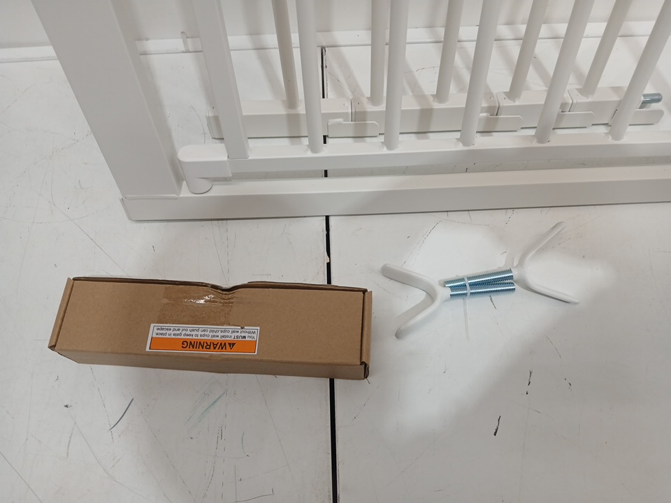 BABELIO MOM'S CHOICE AWARD WINNER METAL ADJUSTABLE WALK-THROUGH PET & BABY GATE WITH NO TOOL INSTALLATION - 28" x 29" to 48" - WHITE (MODEL: CB-M-101)