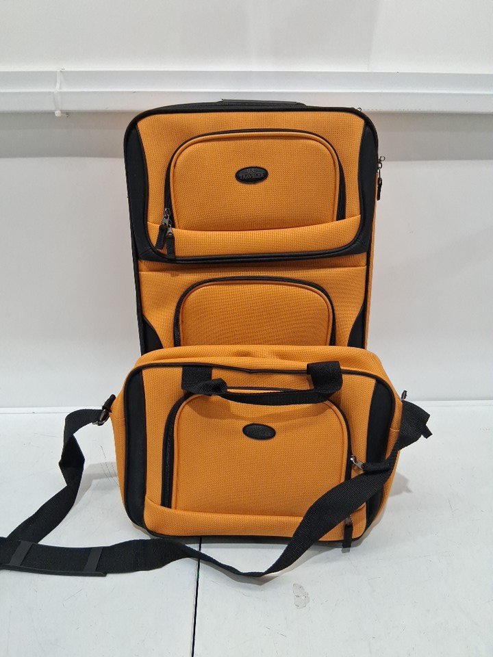 2PC TRAVELER'S CHOICE U.S.TRAVELER RIO EXPANDABLE CARRY-ON LUGGAGE & TOTE SET - MUSTARD YELLOW/BLACK (MODEL: 15757/US5600O)