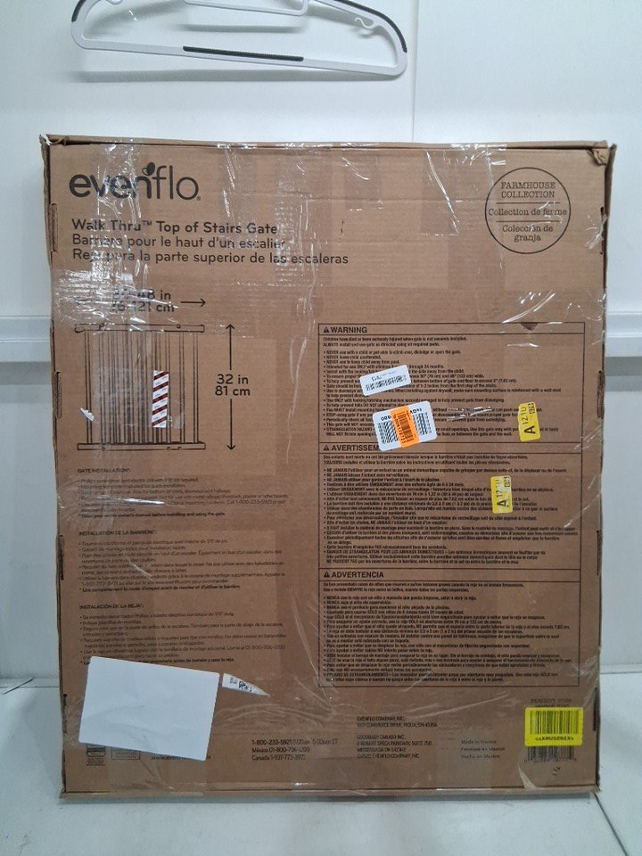 EVENFLO WALK-THRU TOP OF STAIRS extra wide BABY and PET GATE - 32" x 30" - 48" - Farmhouse Collection (MODEL: 10500)