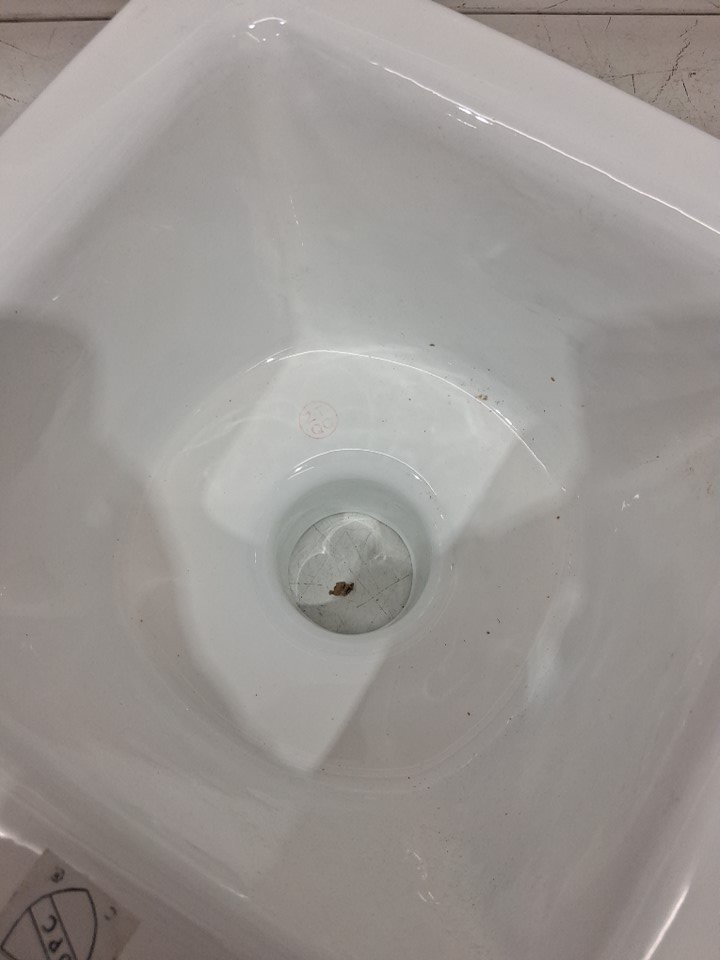 Please note that the top plastic lid and manual are missing from the original packaging. There is a minor crack on the top left side corner of the ceramic floor sink due to shipping. (Please see photos)