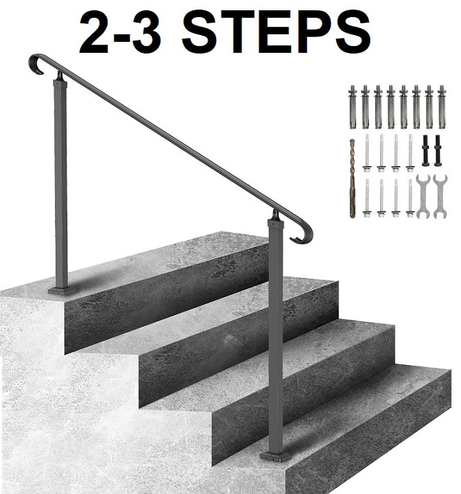 Wrought Iron Handrail, Fit 2 or 3 Steps - black (model: H5712-3)