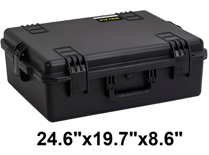 MEIJIA All Weather Portable Waterproof Hard Camera Case with roller wheels - 24.6"X19.7"X8.6" - black (model: 2750)