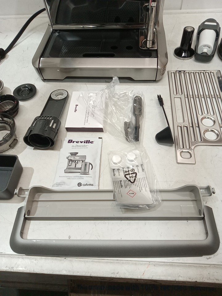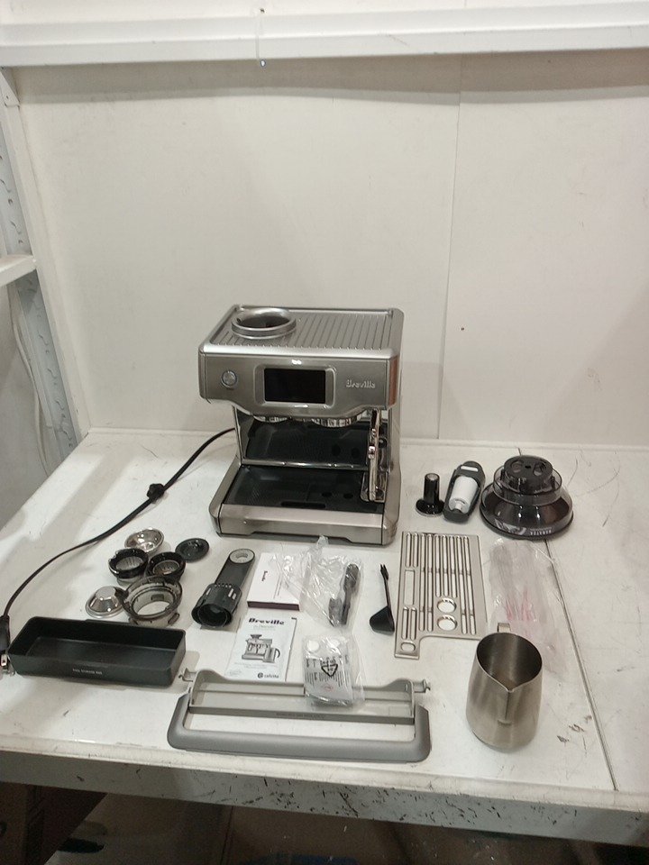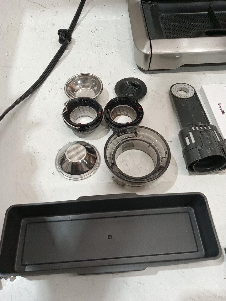the machine is missing it's water tank, but it should be easy to replace. it's also a bit dirty. but it turns on and works. please see photos