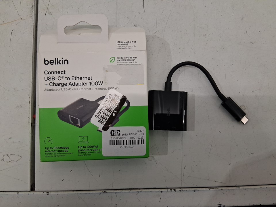 BELKIN CONNECT USB-C TO ETHERNET + CHARGE ADAPTER - 100W - BLACK (MODEL: INC019btBK)