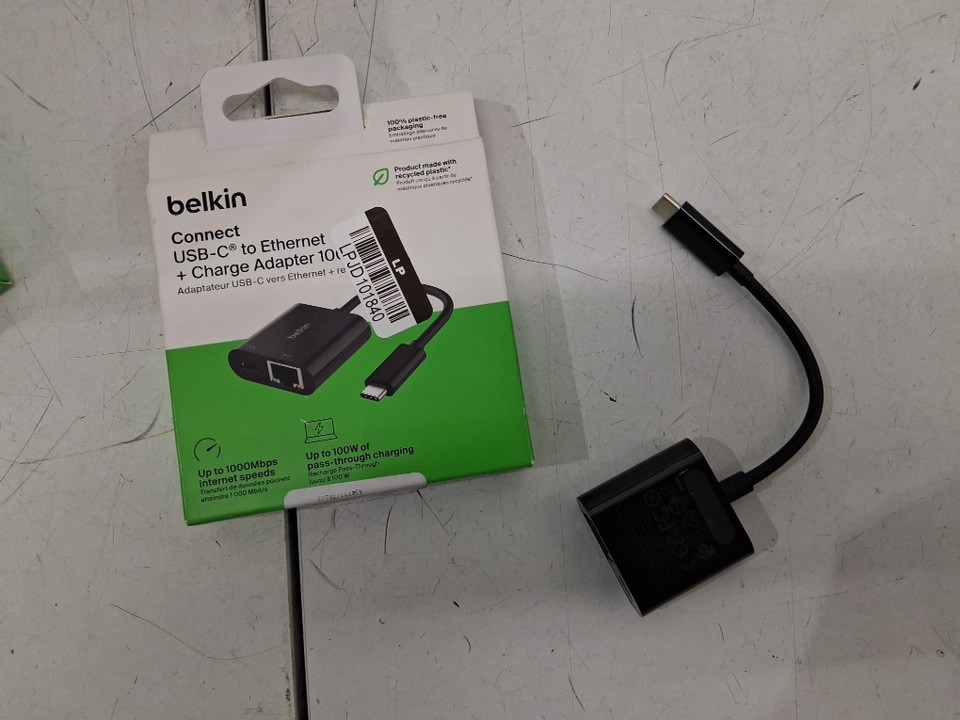 BELKIN CONNECT USB-C TO ETHERNET + CHARGE ADAPTER - 100W - BLACK (MODEL: INC019btBK)