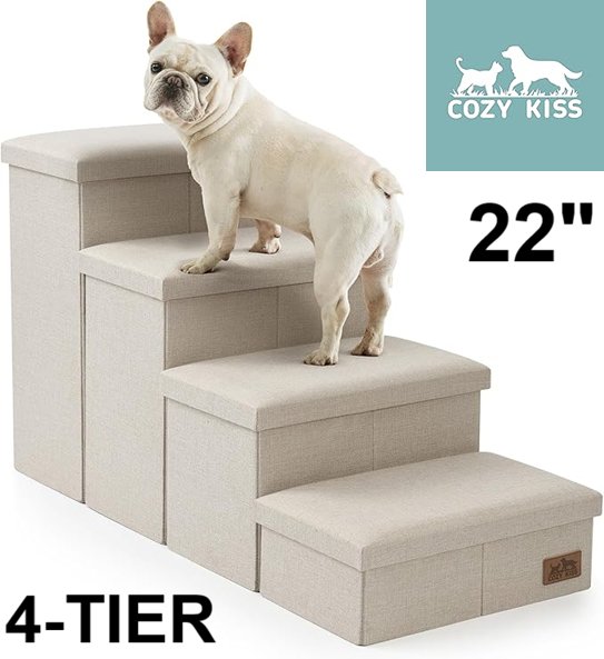 COZY KISS Dog Stairs with Storage, 4-Step Wider Sturdy Dog Steps - 180 Lbs MAX - 22" - BEIGE