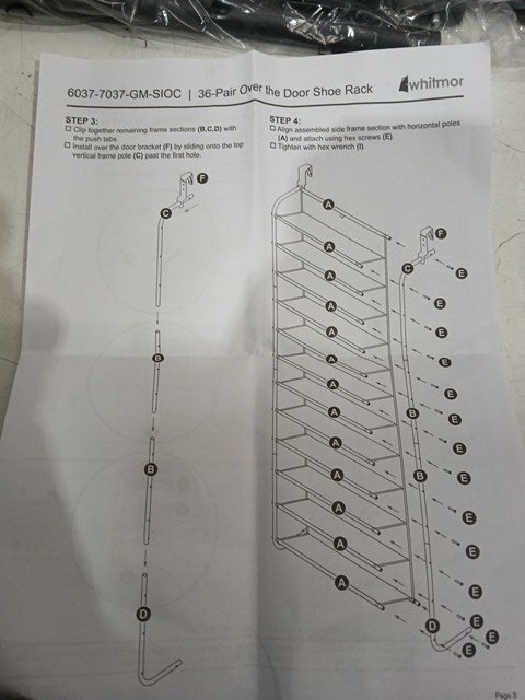 Whitmor Over The-Door Shoe Rack with Mesh Shelves - 36 pair - black (model: 6037-7037-gm-sioc)