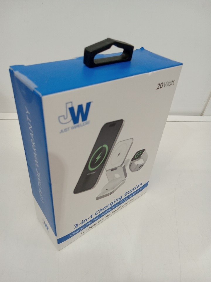 Just Wireless 3-IN-1 Folding Charging Station for Iphone, Airpods, and Apple Watch - 20W - White (Model: 04096-V)