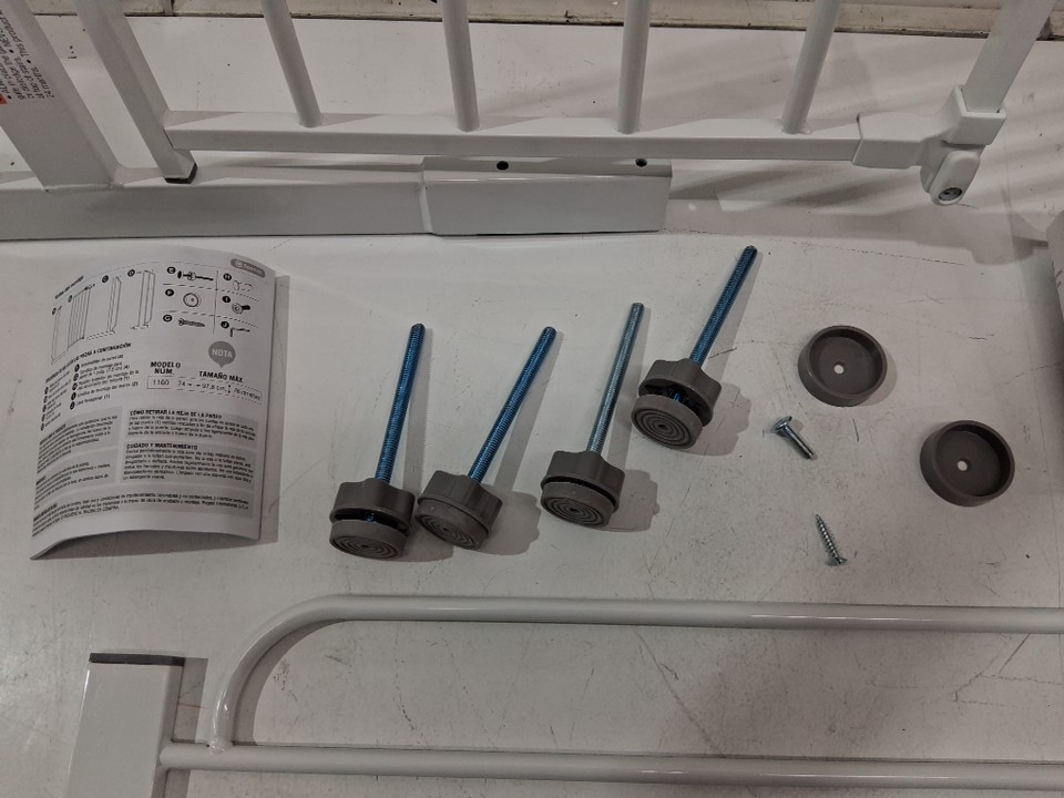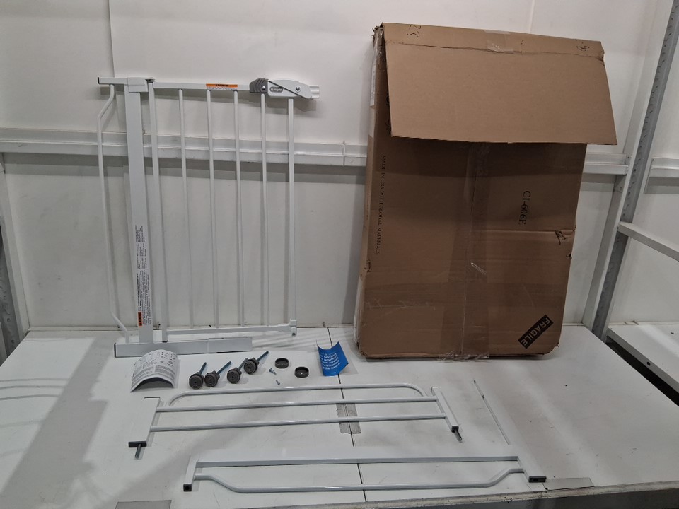 There gate arrived partially assembled indicating previous use. Please note that 2 of the plastic wall cups are not included (see photos)