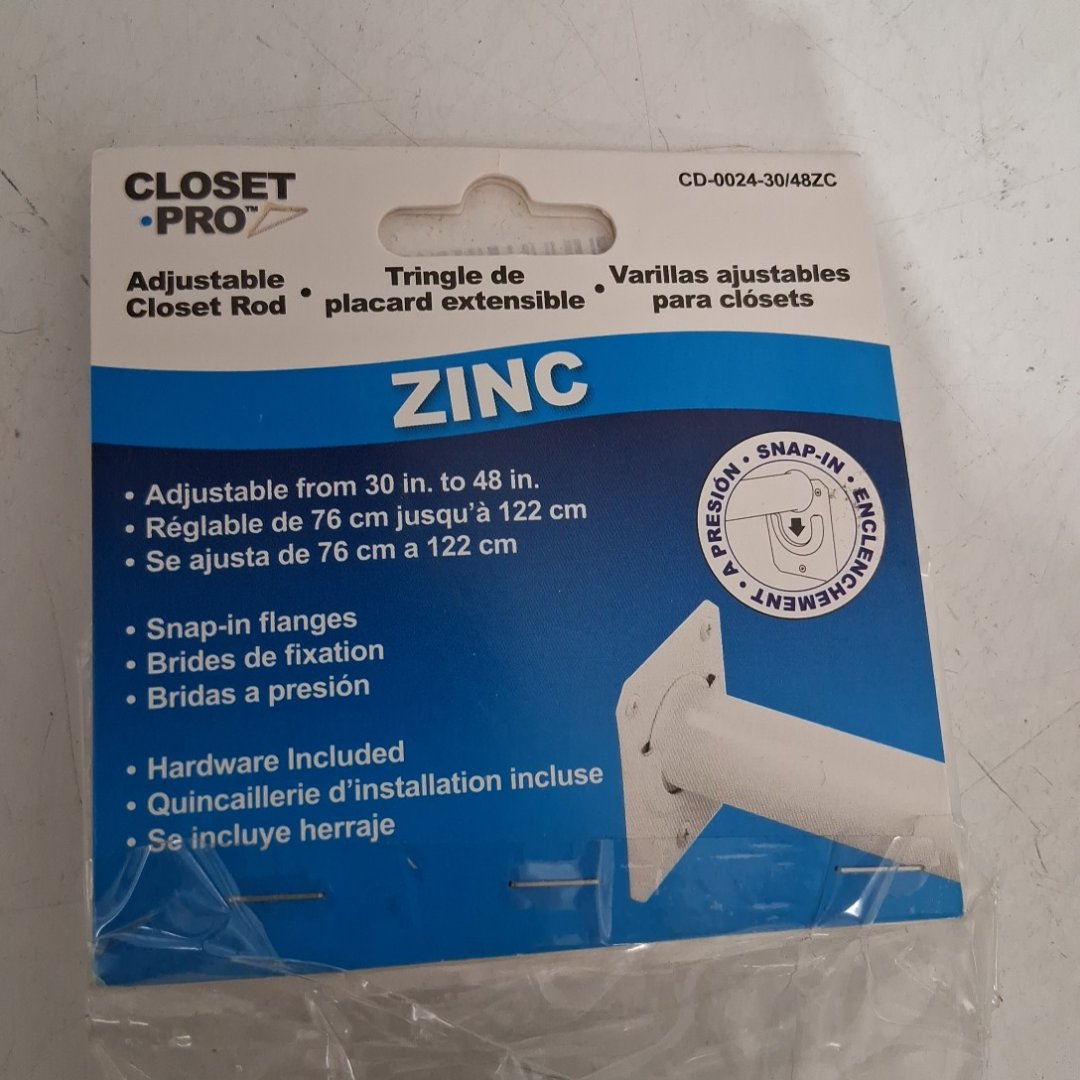 CLOSET PRO HEAVY DUTY ADJUSTABLE ROD 30'' - 48'' (ZINC PLATED) (MODEL: CD-0024-30/48ZC)