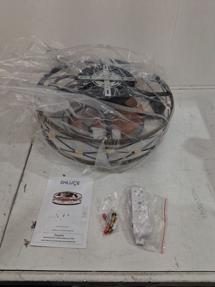 SHLUCE Caged Farmhouse Ceiling Fan with Light and remote - 18.5" - brown/black (Model: FLA006A)