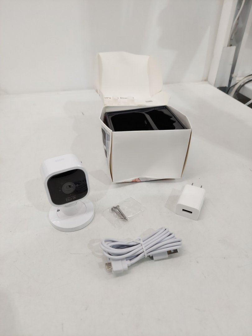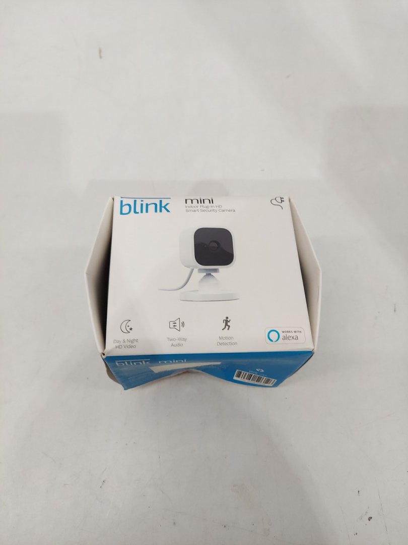 BLINK MINI COMPACT INDOOR PLUG-IN SMART SECURITY CAMERA with 1080P HD VIDEO, NIGHT VISION, and MOTION DETECTION - WORKS WITH ALEXA - white (MODEL: BCM00300U)