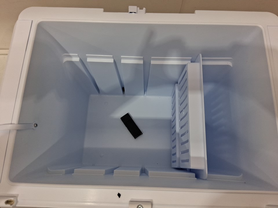 items lid is broken off the hinges, lock is also broken off but warming and cooling function still works and lid can be placed on top