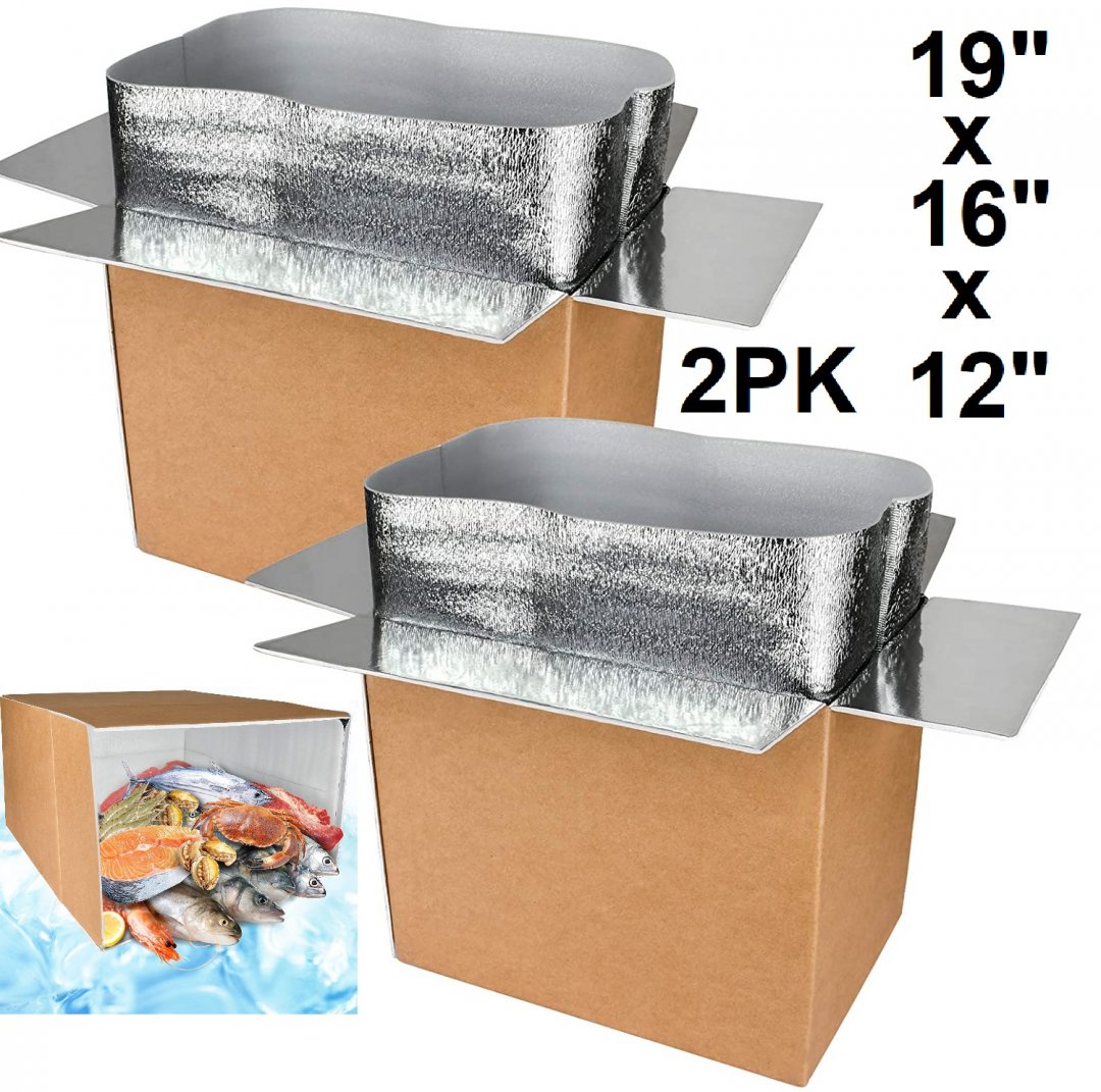 2PK TEMPERATURE INSULATED MAILING BOXES WITH FOIL INSULATED BAG LINERS, LARGE 19" x 12" x 16"