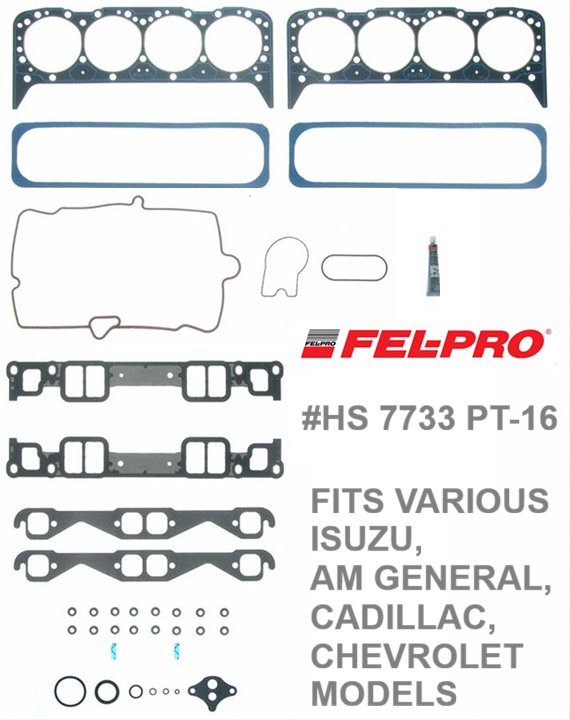 FEL-PRO replacement engine cylinder head gasket set - fits various isuzu,amgeneral,cadillac,chevrolet models - (model: hs 7733 pt-16)