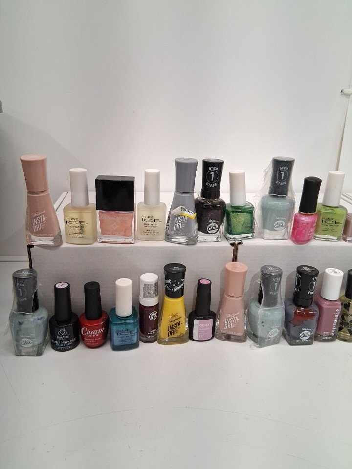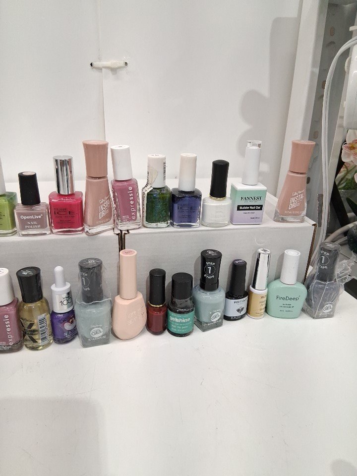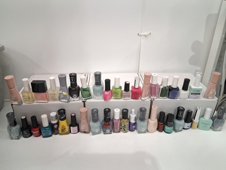 40 ASSORTED REGULAR AND GEL NAIL POLISH - ASSORTED BRANDS/TYPES/SIZES/COLORS