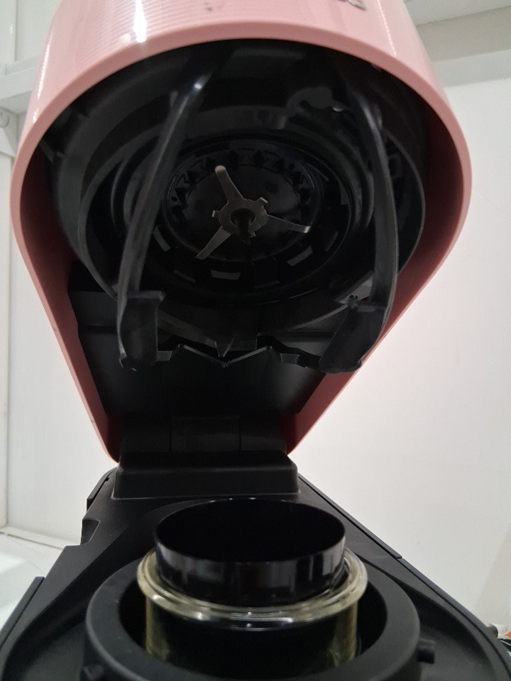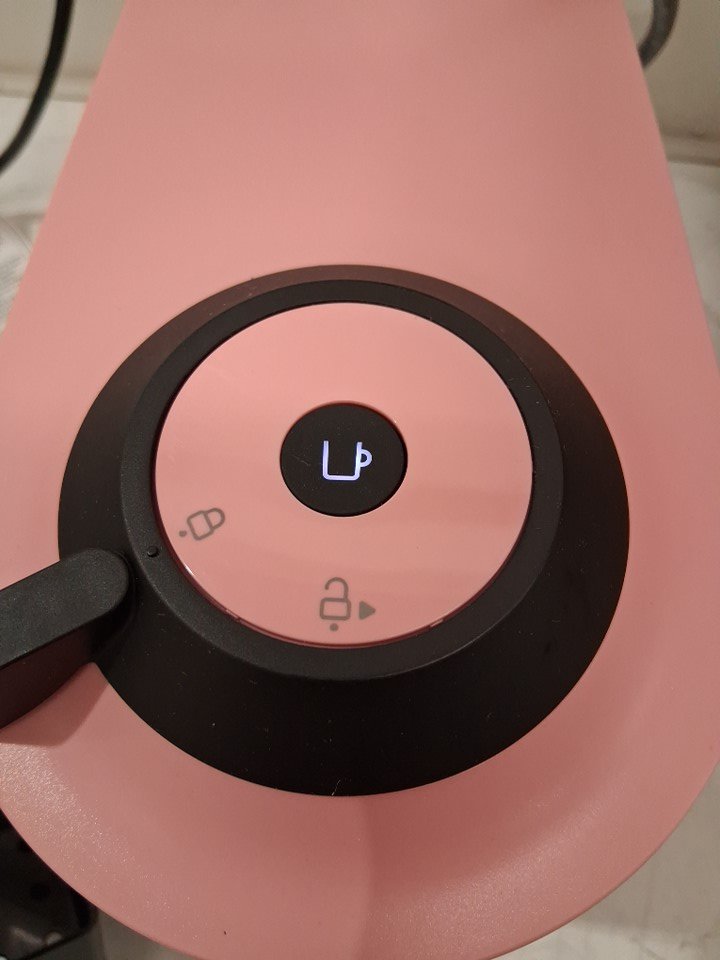 There is a mark on the front of the item. Should be able to come off with more scrubbing. Residue in the tank and pod chamber from prior use. Tested for power. See photos.