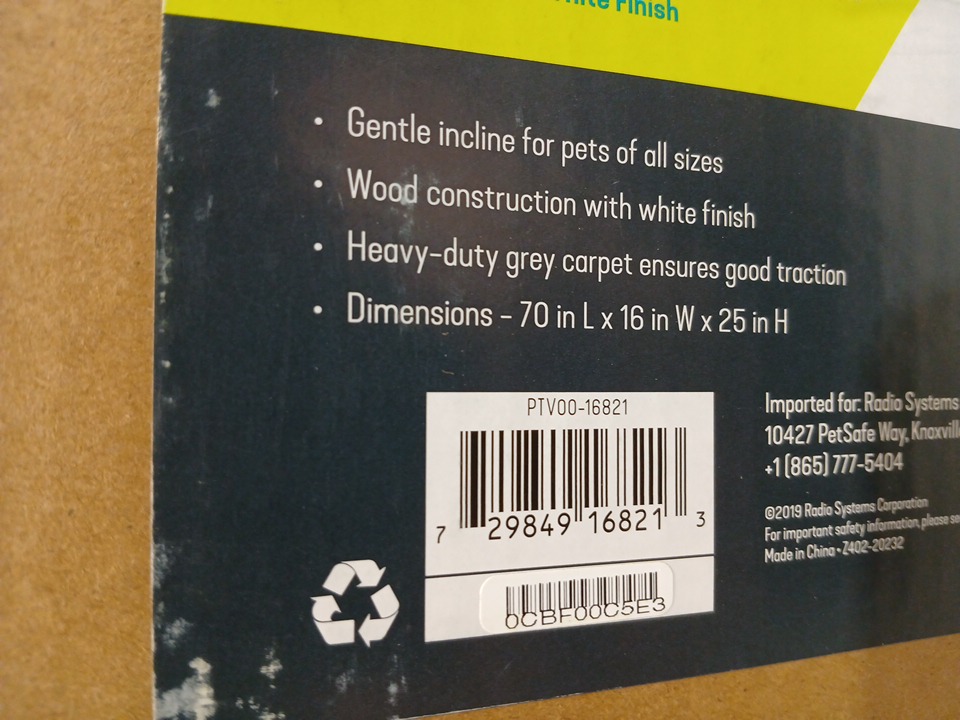 PETSAFE COZYUP PET BED RAMP FOR DOGS AND CATS - 70" - 120LB CAPACITY - white finish/grey carpet (MODEL: piv00-16821)