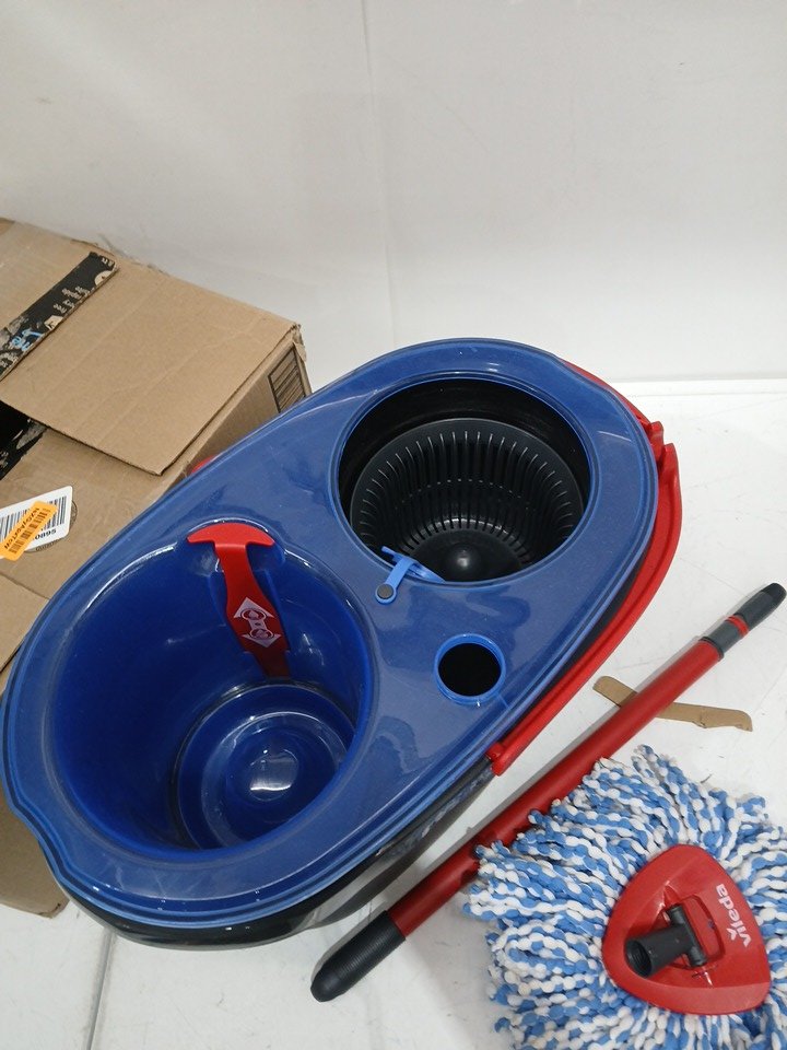 vileda easywring rinseclean spin mop & bucket system with reusable microfibre mophead & extendable handle - blue (model:170144)